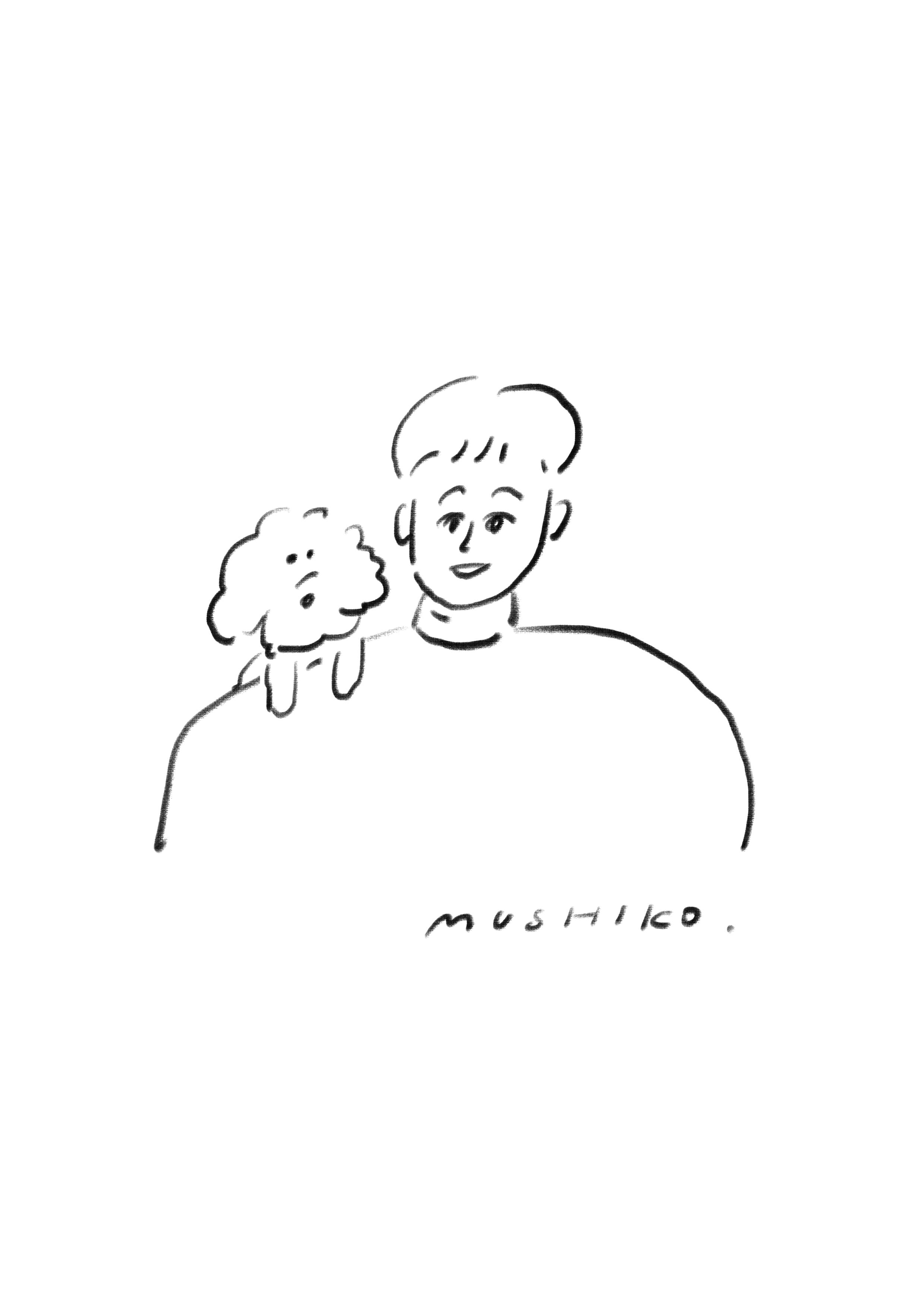 1人と1匹の似顔絵(上半身のみ)
